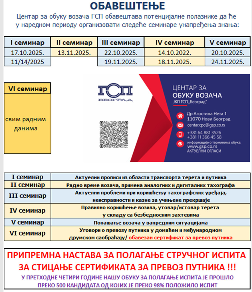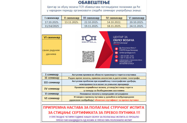 ЦЕНТАР ЗА ОБУКУ ВОЗАЧА - СЕМИНАРИ